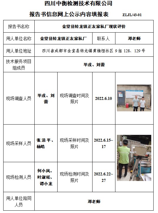 金堂縣轉龍鎮(zhèn)正友家私廠現(xiàn)狀評價